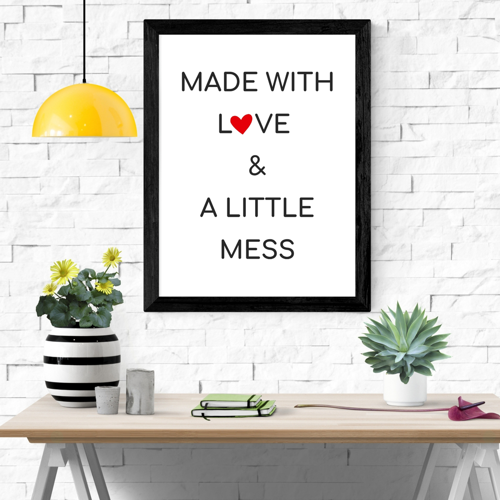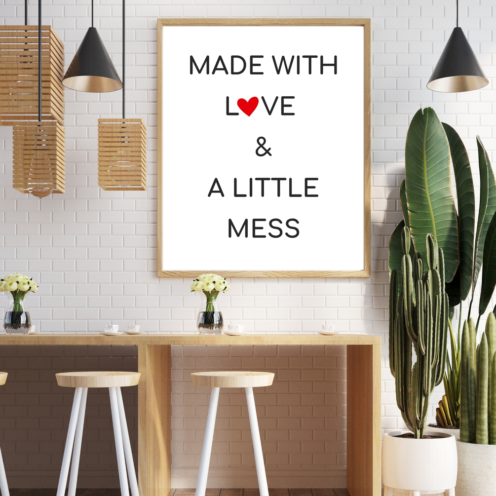 Kitchen Wall Art Printable Quote "Made With Love & A Little Mess" - Digital Download Print